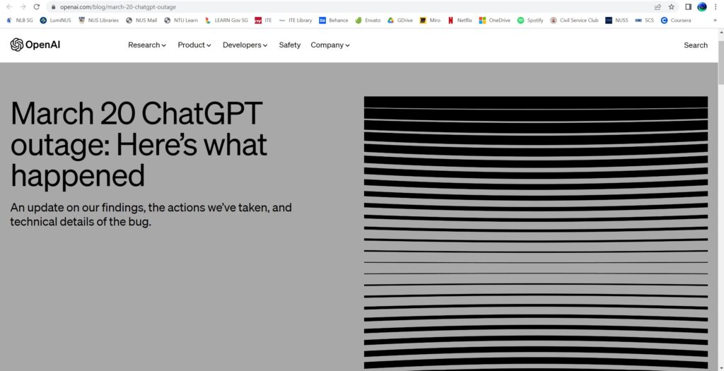 The link to OpenAI‘s Update on the March 20 ChatGPT Outage can be found here. Ref: https://openai.com/blog/march-20-chatgpt-outage