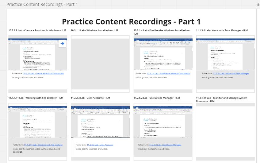 - 11.1.4.11 Lab – Working with File Explorer. Ref: https://connectiteedu.sharepoint.com/:f:/t/QH2301B-KnowledgeSeekers/EnjTlirUI_tIhcReRGn9U_IBMGK9XxO8XmH0ig5Ou-FM3A?e=RJOir7