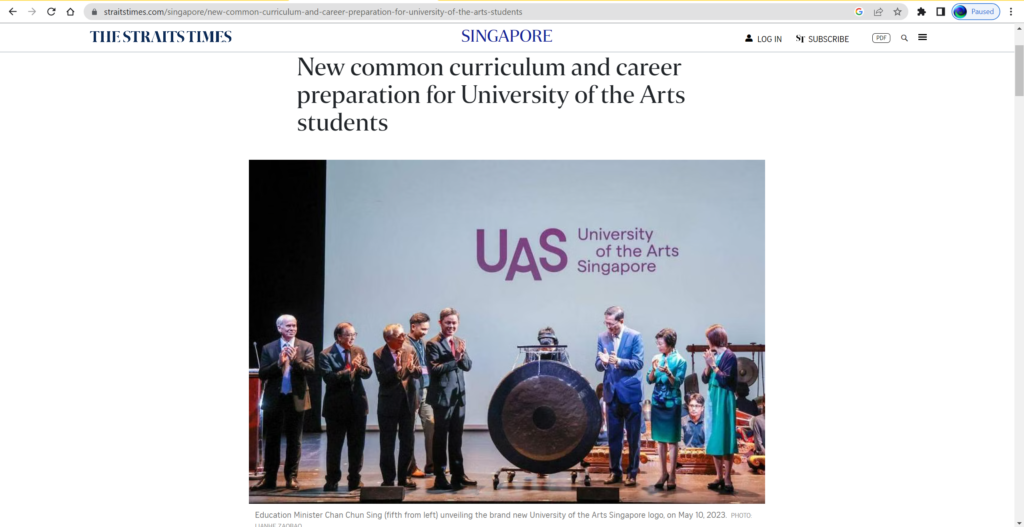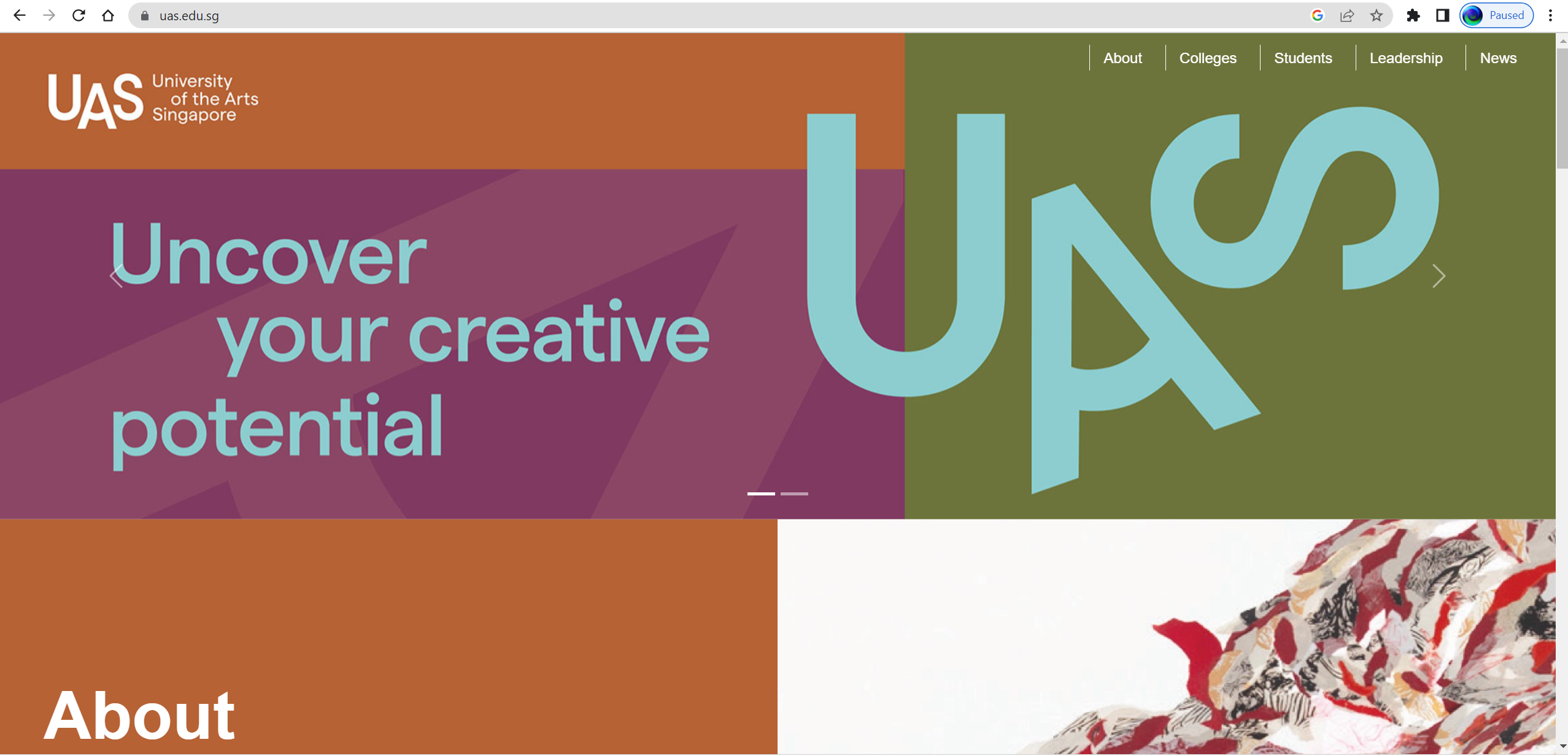 “The University of the Arts Singapore (UAS) is Singapore’s first and only arts university, nurturing a new generation of forward-looking artists, designers, educators, researchers, arts leaders and changemakers.