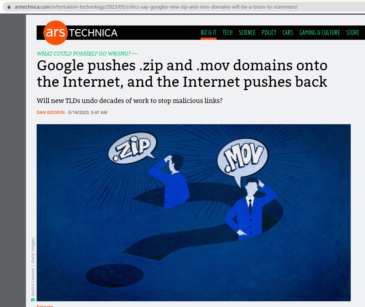 Ref: https://arstechnica.com/information-technology/2023/05/critics-say-googles-new-zip-and-mov-domains-will-be-a-boon-to-scammers/