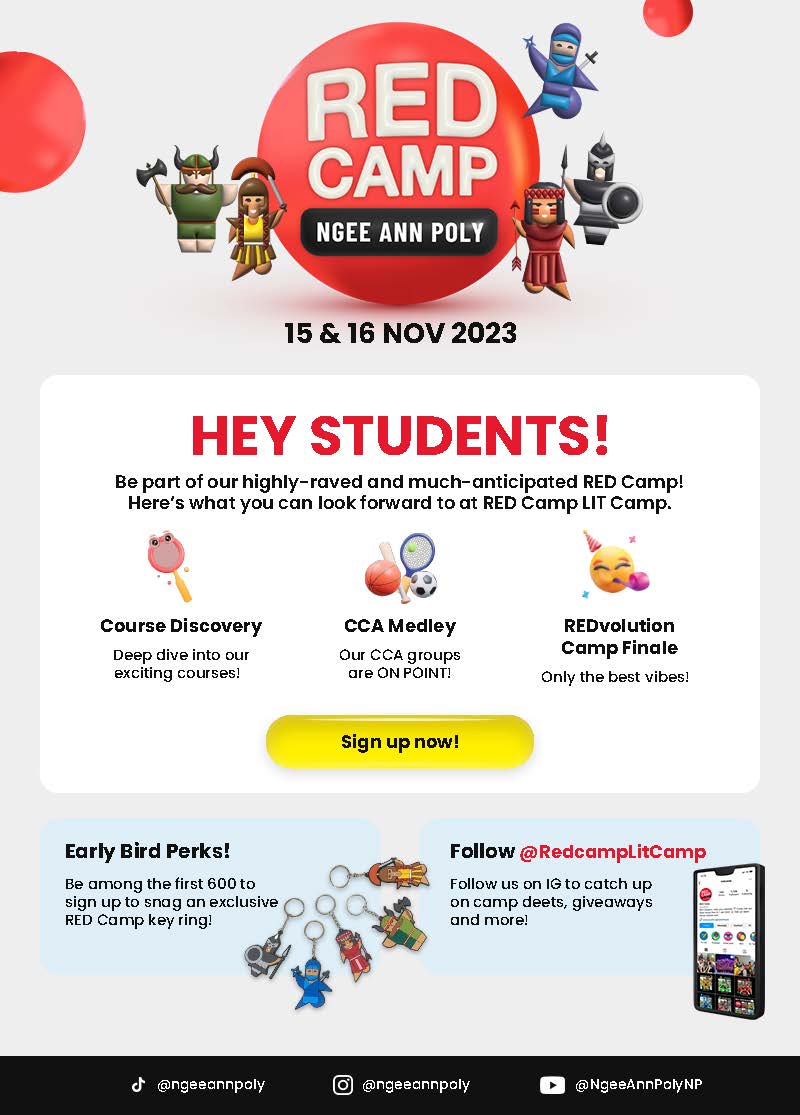 Sign-up now at Ngee Ann Poly’s Red Camp website. Ref: https://www.np.edu.sg/redcamp