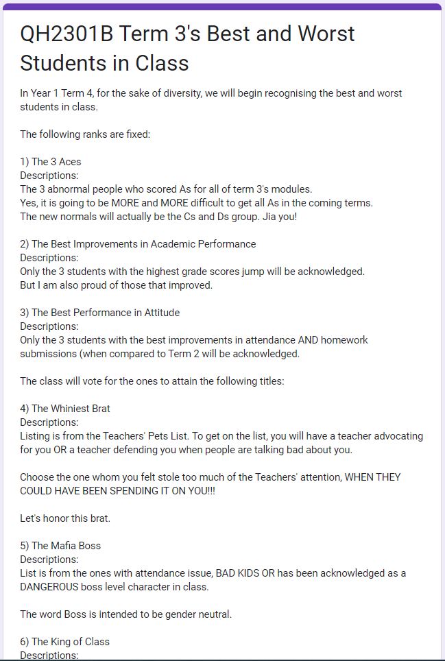For Term 3’s class prizes, we are rewarding the best and worst in class.