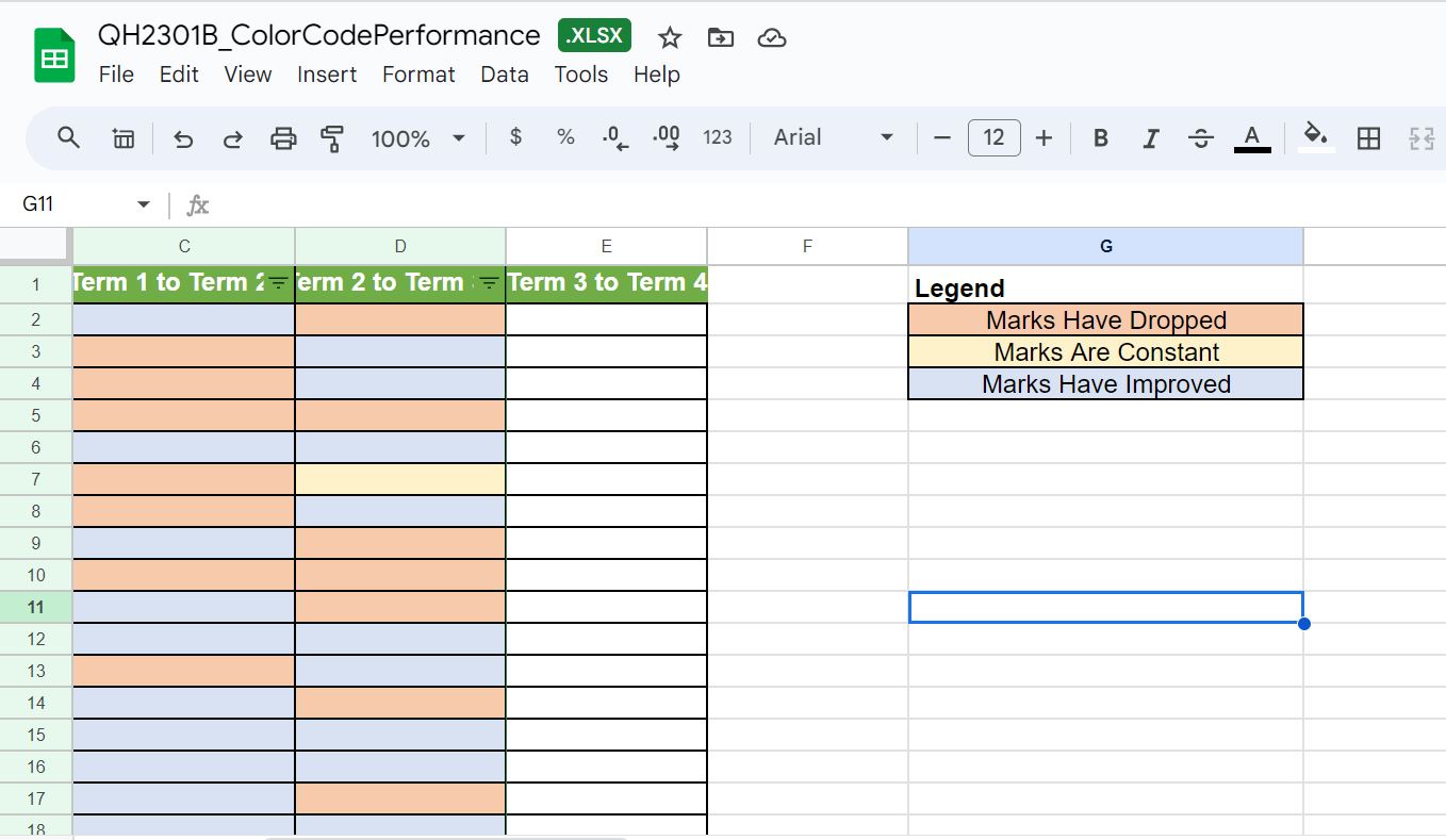 Class, please take note that from Year 1 Term 4 onwards, I will be color coding any improvements, stalemate or deterioration of your grades from the recent and previous terms.